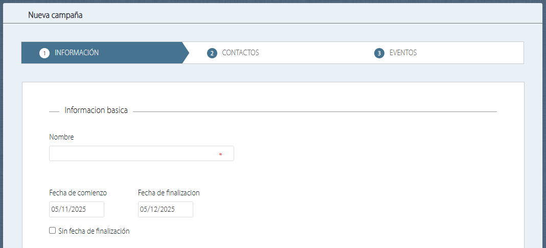 En caso de que la campaña no tenga una fecha de finalización, puede seleccionar la opción Sin fecha de finalización.